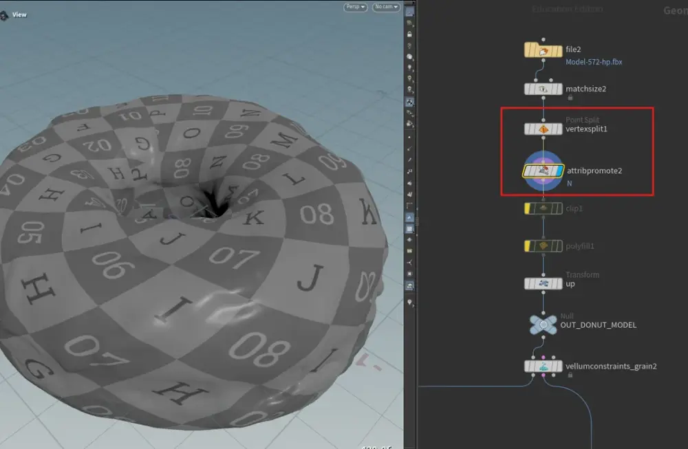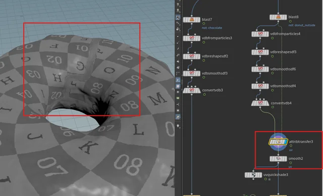 Hey all! Im making a donut tearing simulation with vellum grains. I use the vertexsplit node to promote the uv's from my incoming donut model, from verts to points. I then transfer those point uv's from the original mesh to the vellum grains And after simming and meshing the grains, i transfer the uv's from simmed grains to the meshed donut, but when i smooth the uv's, i get these weird seam lines. Does anyone know how i can fix this?