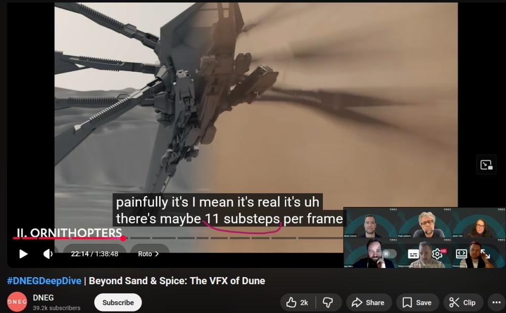 I'm trying to reproduce a similar motion blur quality as they did in Dune: Here is the exact timing in the video: His first answer is a lot of rendering, but then How, and how to composite it? I can only use the subframes when the "Enable Playback at fractional frames" is active Everything else in my scene is not using any substeps. I do understand one way is to render the asset with motion blur separately, what do I get? exrs with subframes or just frames? if just frames what was the point of subframing, if with subframes what do I do with the subframes in compositing with the other exrs that only have frames? and when I export the composited thing, is it with frames only or subframes. Human knowledge is cumulative, once this level of motion blur quality is achieved in Dune, what used to be 0.01% of the cases has now become the new starting point for motion blur, at least for me.