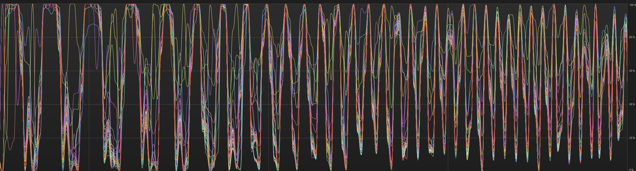 This is a particle simulation using popadvectbyvolume (cached volume, no sim). I was lead to believe that particle simulations are single threaded hence the CPU core clock speed matters more than number of cores. this however looks quite multi threaded and the parts where some threads go their own way seem to be file handling I think, or am I reading it wrong?