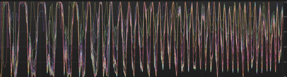 Is the Karma dicing / render time displacement of the ocean single threaded? If you look at the CPU chart (showing 2 frames), the actual rendering happens in the 2 gaps where all threads are at 100% The spectrum bgeo is 36mb! and the mask 240 frame sequence is 230mb There are three visible stages (% time per frame): 1. 50% of the time -> One thread at a time 2. 10-20% of the time -> Right before they all reach 100% there is some dance there, not sure what that is 3. 30% of the time -> all threads at 100% Do you have any idea of what is being done in each of these stages? the last being render because once done the image appears in the render directory.