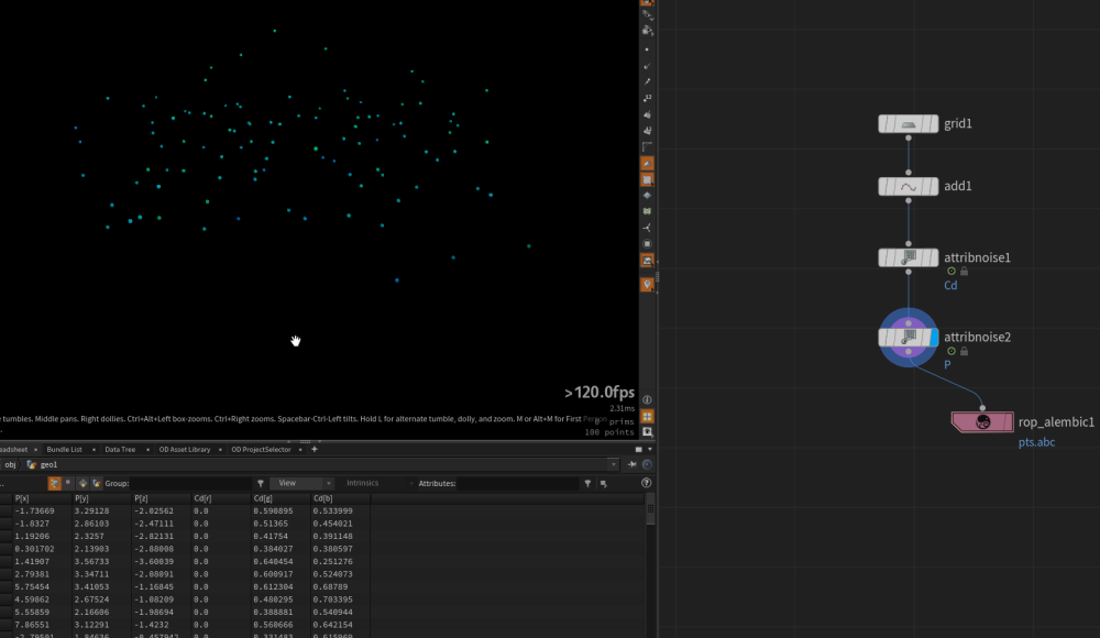I want to hand over the color value and position value to the point generated by Houdini to Maya. I posted the file... What should I do? I think I used to use Bistro before. Now I have no idea. Isn't there a more convenient way? I'm not turning over the data to render, I'm taking the information of the Houdini-generated particles to Maya. I want to use it by instantiating. houdini_to_maya.hip