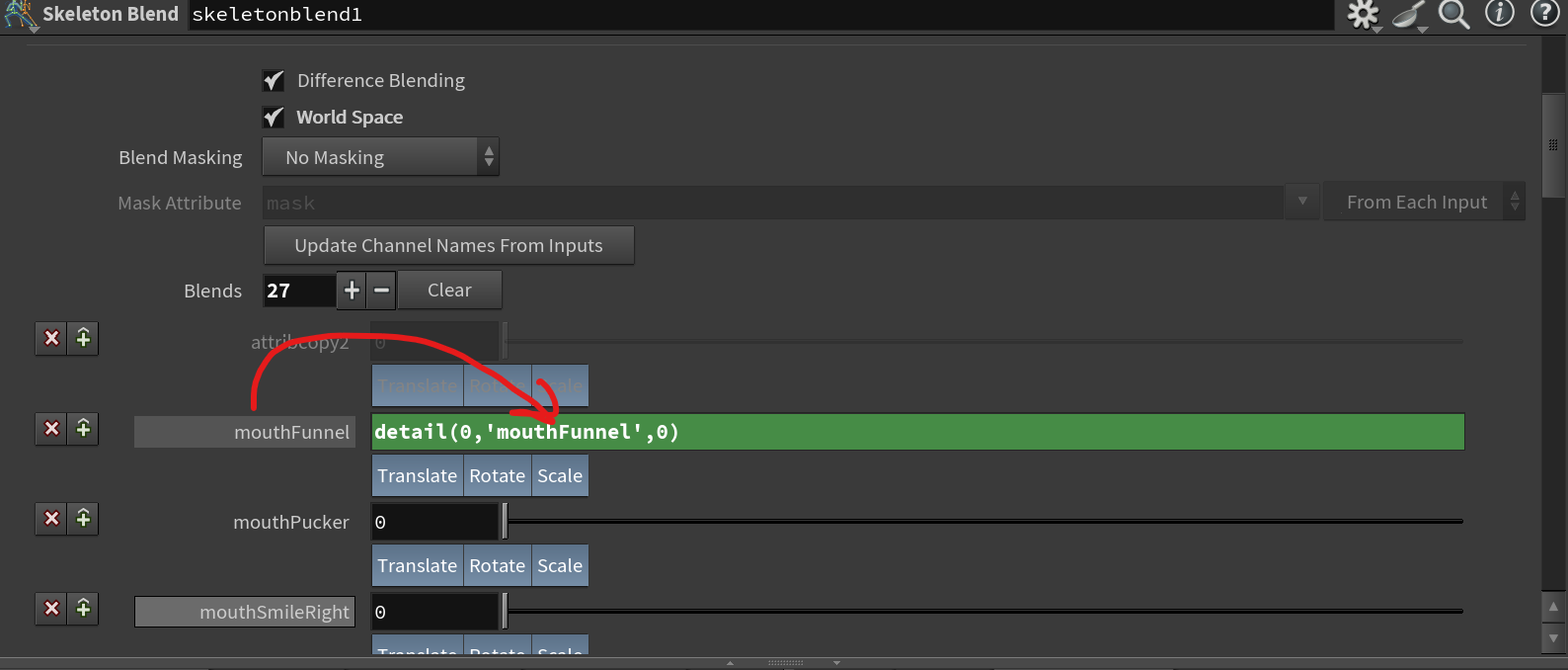 Dee PoG Posted Wednesday at 08:49 PM Share Posted Wednesday at 08:49 PM is there a way to read parameter's Alias value to use it in detail function? There's gonna be 50+ blend shapes, I've got all their weights animation stored as detail attributes and I really don't feel like typing all those 50+ names manually, so it would be great for the parameter to pass its Alias to detail function Quote Link to comment Share on other sites More sharing options...