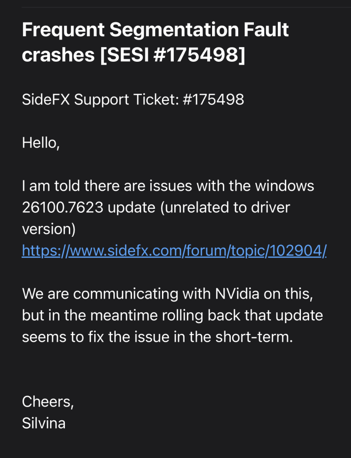 Kevin Gillen Posted Wednesday at 08:39 PM Share Posted Wednesday at 08:39 PM Just bought a new windows machine with dual Nvidia graphic cards. Tries rendering Karma GPU for the first time and it keeps crashing my machine. I heard this is a know issue and that there is a setting that can fix it. Any help would be great. Thanks Quote Link to comment Share on other sites More sharing options...